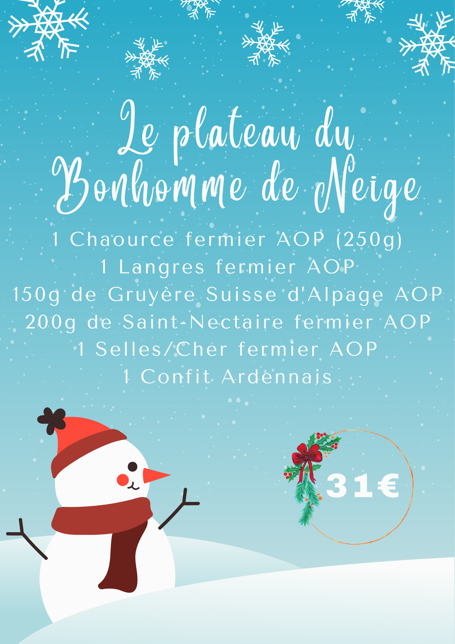 1 Chaource fermier AOP (250g) /// 1 Langres fermier AOP /// 150g de Gruyère Suisse d’Alpage AOP /// 200g de Saint-Nectaire fermier AOP /// 1 Selles/Cher fermier AOP /// 1 Confit Ardennais